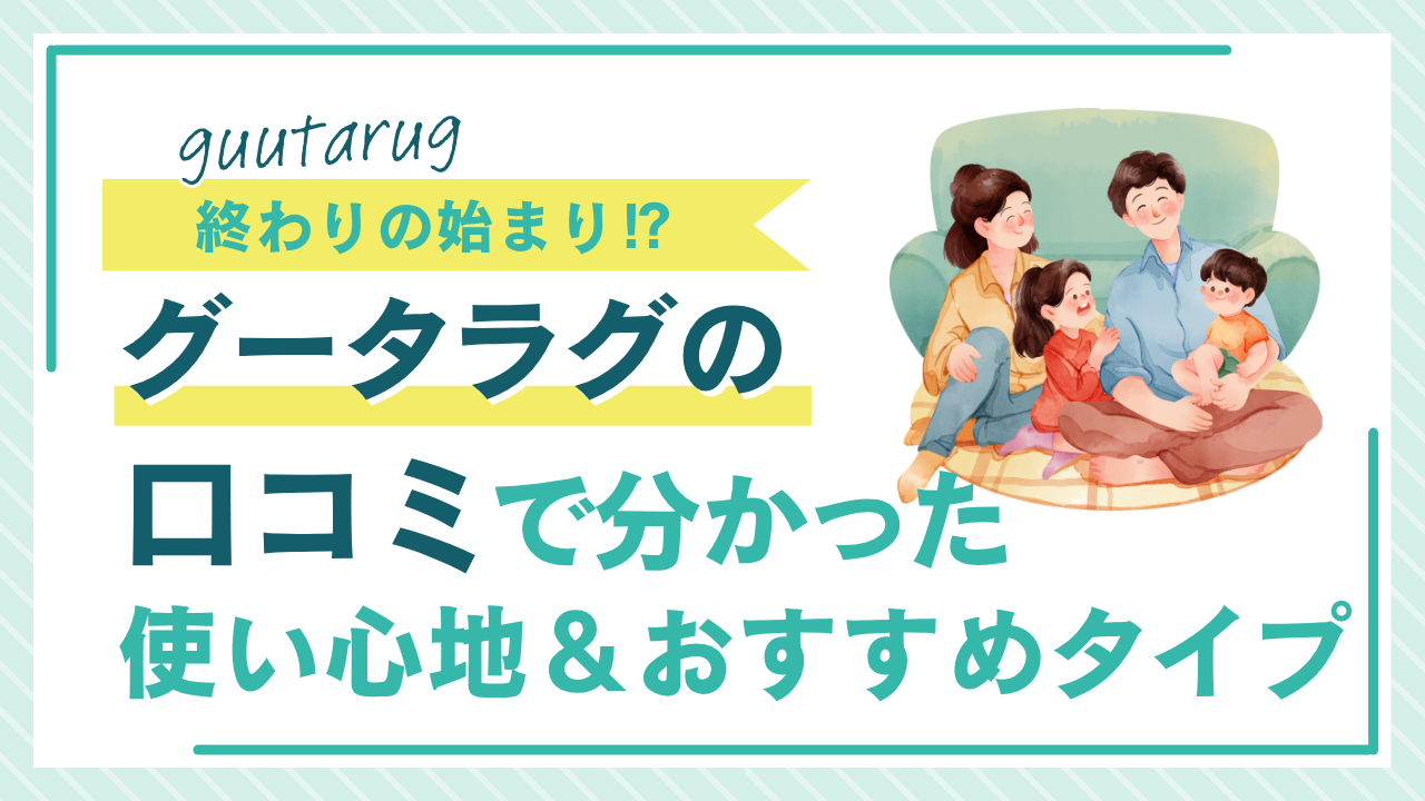 とはいえ、この点を除けば、グータラグは快適性や使い勝手の高さで評価されている商品です。 広々としたスペースで家族みんなが集まりやすく、リラックスできる空間を作れるというポジティブな魅力が十分にあります。
