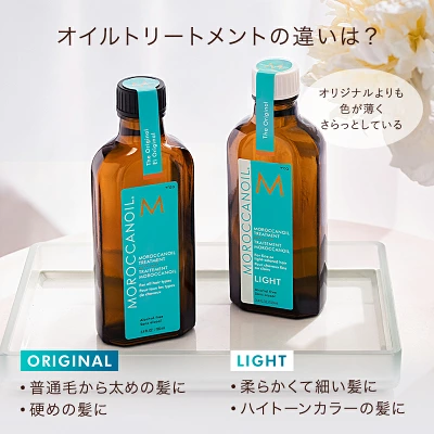 モロッカンオイルには主にノーマルタイプとライトタイプの2種類があり、自分の髪質に合った方を選ぶことが推奨されています。
