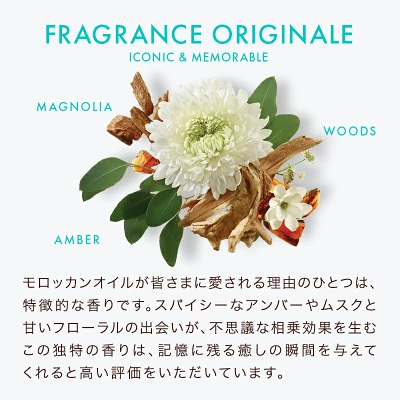 髪をいたわりながらべとつかない処方ですばやく髪に浸透しツヤのある髪に導いてくれる洗い流さないトリートメント、モロッカンオイル。