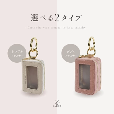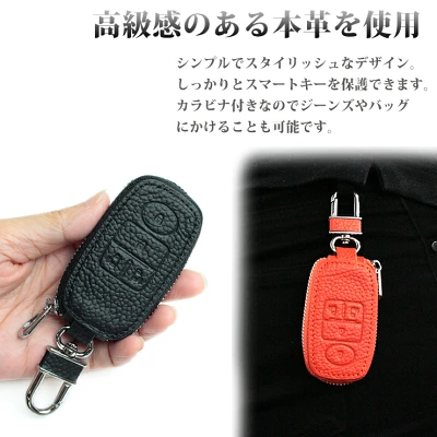ダブルファスナー構造で、車のキーだけでなく家の鍵や小物も一緒に収納できる多機能デザインが魅力。