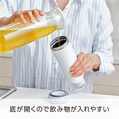 底フタを外すと広口になるため、市販の大きめの氷を簡単に入れられます。もちろん、本体は保温・保冷機能に対応しています。