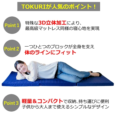 極上 ごろ寝マット 【TOKURI】 お昼寝マット 折りたたみ コンパクト マットレス 敷布団 洗える 車中泊 大人 持ち運び 長座布団 三つ折り 高反発 アウトドア ギフト プレゼント tokuri ペット 母の日 父の日 ごろ寝 マット 送料無料