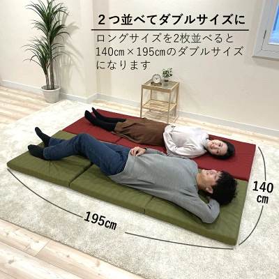来客が泊まるとき、布団を用意するのが大変という人も多いですよね。TOKURIごろ寝マットは、手軽に敷ける簡易寝具としても活用できます。ふだんはリビングで使い、来客時だけ寝具として使うなど、用途を分けられるのも魅力です。